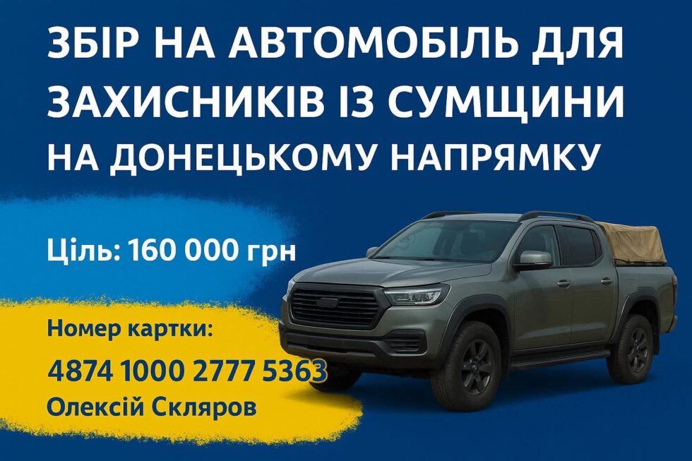 Для захисників із Сумщини, які воюють на Донецькому напрямку, оголосили збір на автомобіль