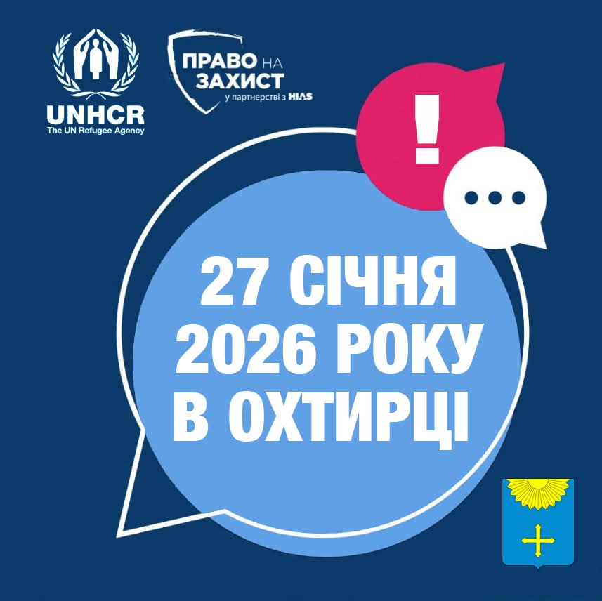 27 січня (вівторок) 2026 року у м. Охтирка за адресою вул. Паркова, 2А (міський центр культури та дозвілля “Кнєжа”) з 11:00 до 16:00 буде проходитиме збір даних на програму УВКБ ООН для виплати грошової допомоги за попереднім записом.