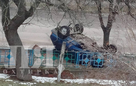 В Охтирці ВАЗ протаранив дерево та перекинувся: водія госпіталізували