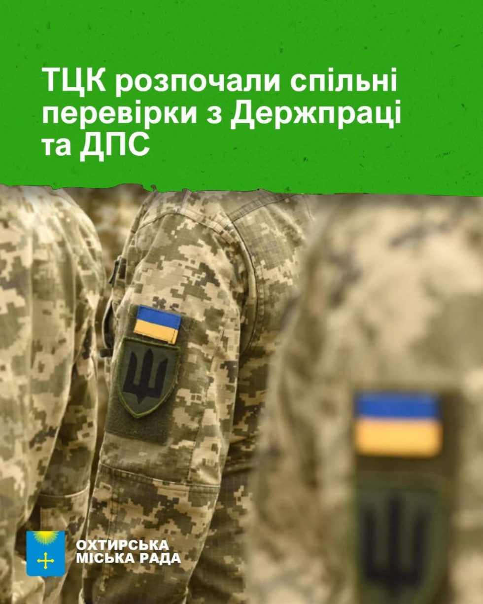 Управління соціальної та ветеранської політики Охтирської міської ради повідомляє, що у 2025 році посилено контроль за дотриманням трудового законодавства. Територіальні центри комплектування розпочали спільні перевірки з Держпраці та ДПС. Перевіряють, зокрема, ведення військового обліку та оформлення трудових відносин.